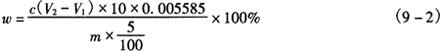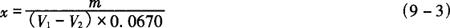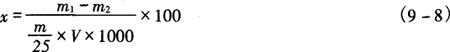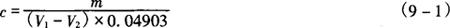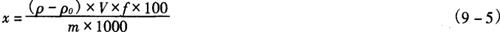 测定用样品液及试剂空白液由标准曲线查出浓度值(ρ及ρ0),再按式(9-5)计算。