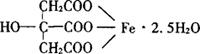 式中 V——滴定消耗高锰酸钾体积,mL c——高锰酸钾标准溶液浓度,mol/L m——样品质量,g 0.005585——每毫摩亚铁质量,g/mmol 二、柠檬酸铁铵 化学名:柠檬酸铁铵(Ferric Ammonium Citrate) 分子式:Fe(NH4)2H(C6H5O7)2 相对分子质量:488.16 1.柠檬酸铁铵的鉴别 1.1 试剂和溶液。 1.1.1 盐酸:分析纯。 1.1.2 高锰酸钾:0.3%溶液。 1.1.3 氢氧化钠:4%溶液。 1.1.4 硫酸汞试液。 1.1.5 0.3%高锰酸钾溶液。 1.1.6 柠檬酸铁铵。 1.2 操作步骤。 1.2.1 灼烧本品0.5g,残渣溶于稀盐酸(1+3),应呈铁盐反应。 1.2.2 10%本品溶液5mL,加0.3mL0.3%高锰酸钾溶液及4mL硫酸汞试液后,加热煮沸,应产生白色沉淀。 1.2.3 取本品0.5g,溶于5mL水中,加4%氢氧化钠试液5mL,应生成红棕色沉淀。将此混合物加热,则放出氨气。 2.柠檬酸铁铵的含量测定 2.1 试剂和溶液。 2.1.1 柠檬酸铁铵。 2.1.2 硫酸:分析纯。 2.1.3 高锰酸钾:分析纯。 2.1.4 盐酸:分析纯。 2.1.5 碘化钾:分析纯。 2.1.6 0.1mol/LNa2S2O3溶液。 2.1.7 淀粉指示剂。 2.2 测定方法 取本品约0.5g,精密称定,置具塞锥形瓶中,加水15mL溶解后,加硫酸1mL,加热至溶液由暗棕色变成淡黄色,放冷至约15℃,滴加高锰酸钾试液至溶液显粉红色并持续5s,加盐酸15mL与碘化钾试液15mL,密塞,静置3min,加水50mL稀释后,用0.1mol/LNa2S2O3溶液滴定至近终点时,加淀粉指示液2mL,继续滴定至蓝色消失,并将滴定的结果用空白试验校正。每毫升的0.1mol/LNa2S2O3滴定液相当于5.585mg铁。 三、柠檬酸铁 化学名:柠檬酸铁(Ferric Citrate) 结构式