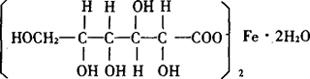 分子式:C4H2FeO4 相对分子质量:169.91 (一)富马酸亚铁的鉴别 1.试剂和溶液 1.1 富马酸亚铁 1.2 盐酸:分析纯。 1.3 碳酸钠:分析纯。 1.4 0.02mol/L( 1.5 硫酸:分析纯。 1.6 间苯二酚:分析纯。 1.7 氢氧化钠:分析纯。 1.8 10%铁氰化钾溶液。 1.9 1%邻二氮菲乙醇溶液。 2.操作步骤。 2.1 取本品2g,加盐酸溶液(1+8)100mL,加热使之溶解,冷却、过滤,沉淀以盐酸溶液(1+100)洗涤3次,每次5mL,再用水洗至滤液无色。在105℃干燥后,取出适量,加水制成每毫升含5μg的溶液。将溶液在分光光度计测定,在波长206±1nm处有最大吸收。 2.2 取2.1中沉淀0.1g,加碳酸钠试液(10+100)2mL,溶解后,加0.02mol/L(1/5KMnO4)试液数滴,即呈褐色。 2.3 取本品50mg,加间苯二酚100mg,置瓷蒸发皿中混匀,加硫酸3~5滴,缓缓加热至成暗红色半固体状,置冷,加水25mL,过滤。取滤液1mL,加水10mL,摇匀,溶液呈橙红色,并有绿色荧光。再加4.3%氢氧化钠试液数滴使呈碱性,溶液即呈红色,并有荧光。 2.4 取2.1中溶液,加10%铁氰化钾试液,即产生深蓝色沉淀,分离,沉淀在稀盐酸(23.4+100)中不溶,但加氢氧化钠试液,即分解成棕色沉淀。 2.5 取2.1中溶液,加1%邻二氮菲的乙醇溶液,即呈沉红色。 (二)富马酸亚铁的含量测定 1.试剂和溶液 1.1 富马酸亚铁。 1.2 硫酸:分析纯。 1.3 邻二氮菲指示液。 1.4 硫酸铈。 2.测定方法 取本品约0.3g,精密称定,加稀硫酸15mL,加热溶解后,放冷,加新沸过的冷水50mL与邻二氮菲指示液2滴,立即用0.1mol/L硫酸铈滴定液滴定,并将滴定结果用空白试验校正。每毫升0.1mol/L硫酸铈滴定液相当于16.99mgC4H2FeO4。 五、葡萄糖酸亚铁 化学名:葡萄糖酸亚铁(Ferrous Gluconate) 结构式: