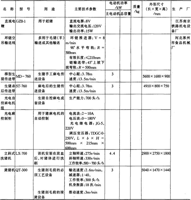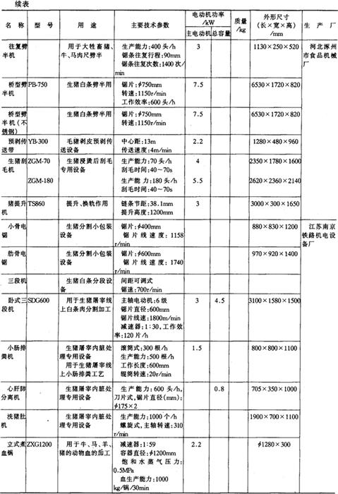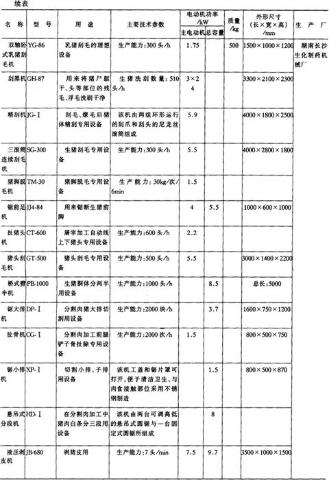 3.肉及肉制品加工机械产品 (1)猪屠宰成套机组产品