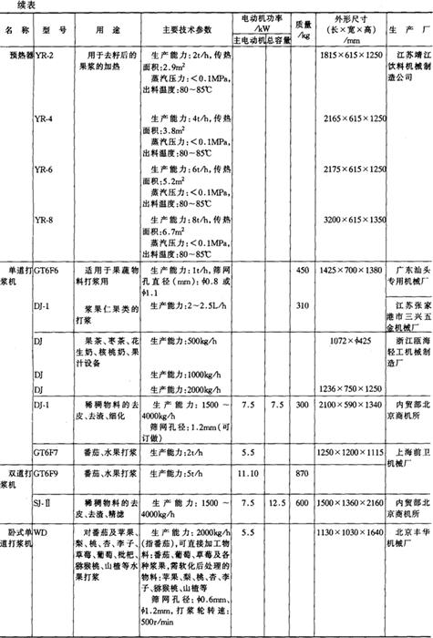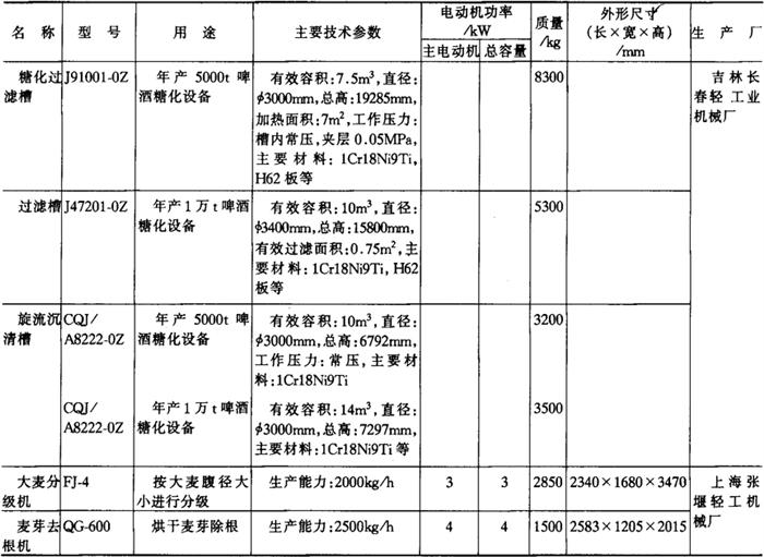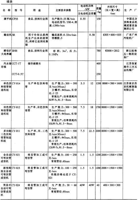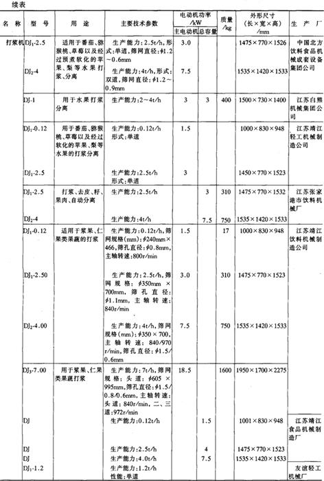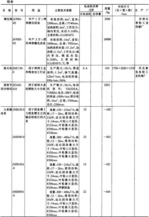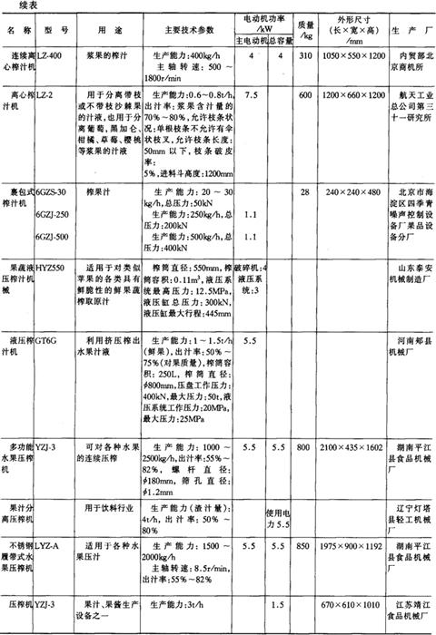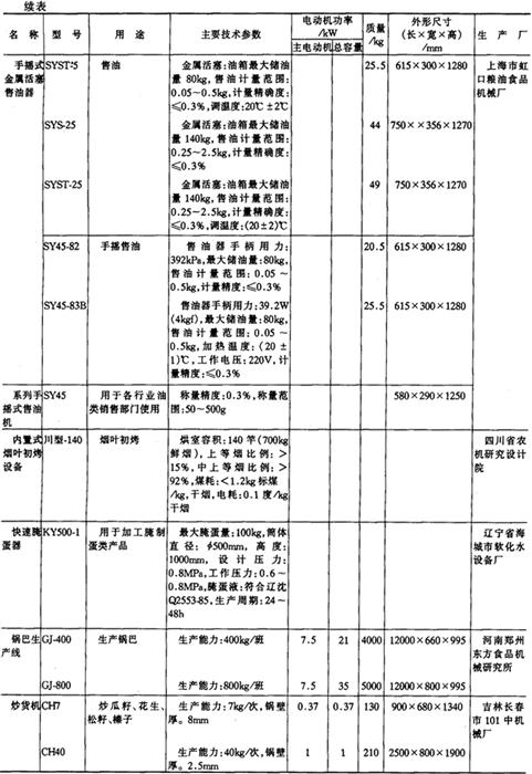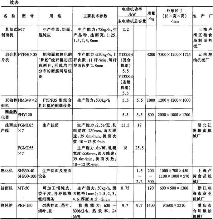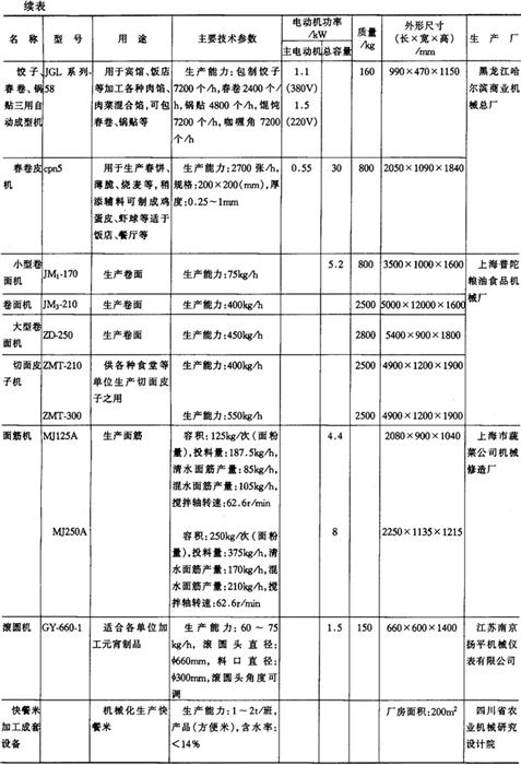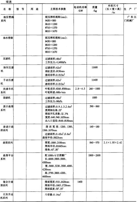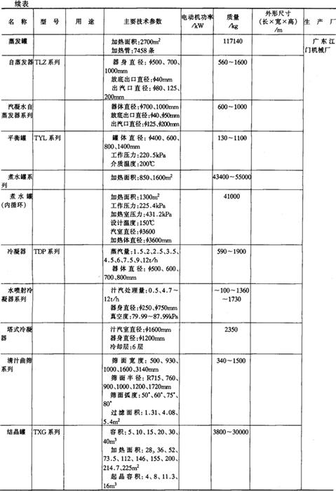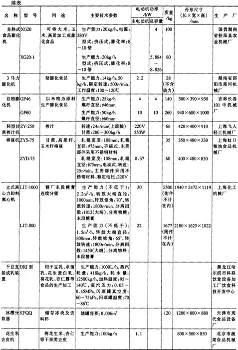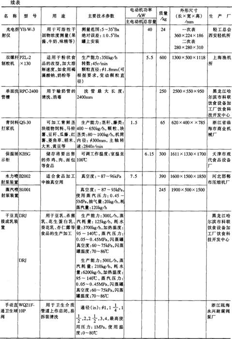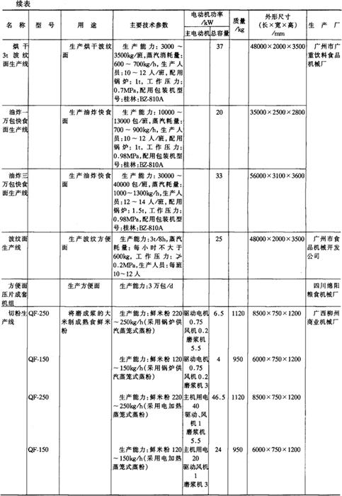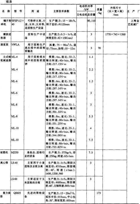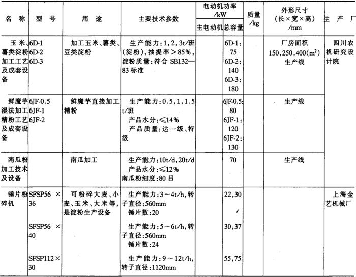 注*1tf=9.806×103N,下同。 14.淀粉及淀粉制品加工机械产品