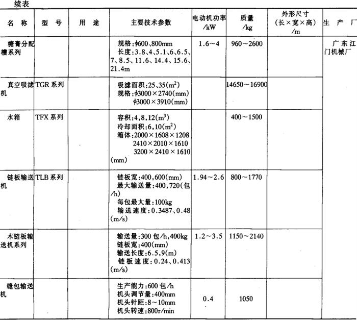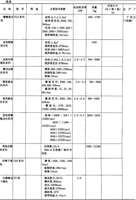 6.糖加工机械产品 (1)甘蔗糖加工机械产品