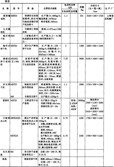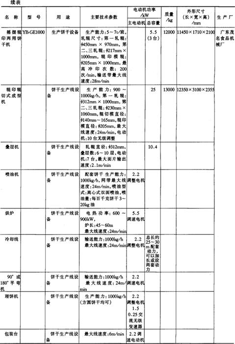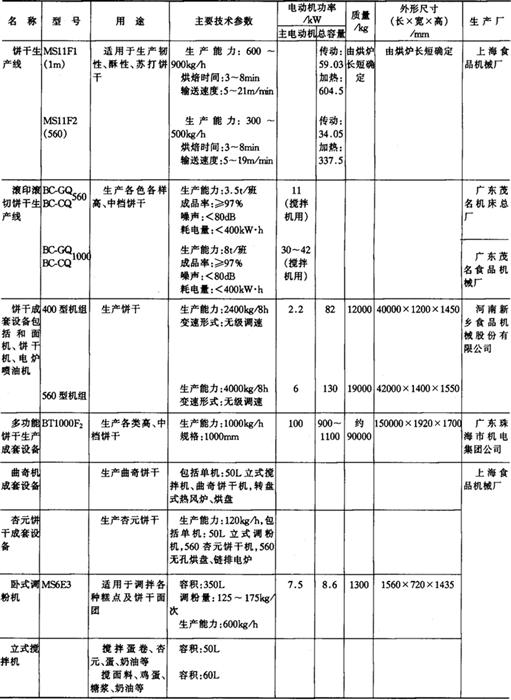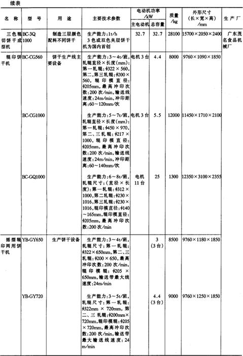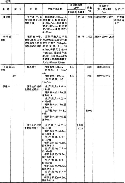 9.饼干、糕点加工机械产品 (1)成套机组产品