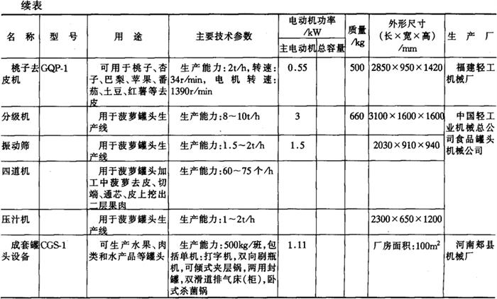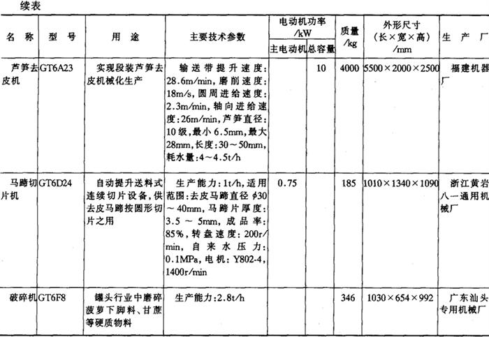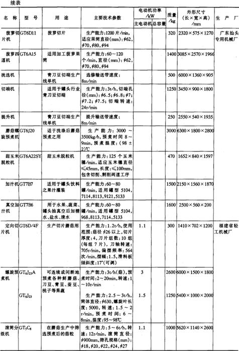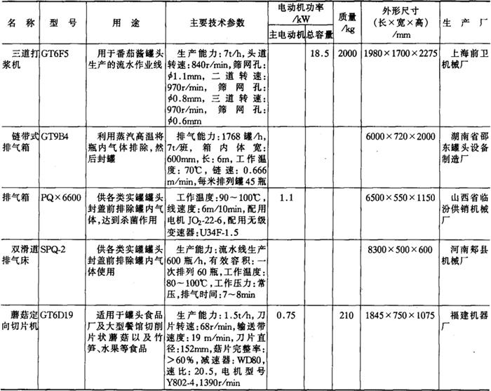 11.罐头食品加工机械产品 (1)成套机组产品