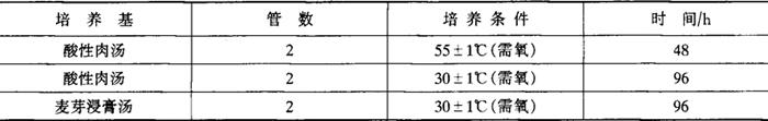 (2)酸性罐头食品 每罐接种培养基、管数及培养条件见表5-3-6。 表5-3-6