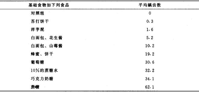 | 释义 | 食品营养与口腔保健 食品营养与口腔保健的关系十分密切。食物中的营养物质通过吸收可以增强口腔防病能力。但食物又可通过菌斑细菌代谢产物的作用引起牙病。因此对食物的选用要有一个比较全面的考虑。然而由于年龄、生活习惯、民族特点、经济状况、个人嗜好各有不同,要规定一个口腔保健食谱就很困难。经过不少学者与专家研究,以下一些食物营养在口腔保健中的作用可供参考。 【碳水化合物】 “吃糖多了牙齿就会烂”是人们日常生活中的经验总结,现已有越来越多的证据证明这种论断是正确的。 动物实验证明:蔗糖含量高的饲料可造成实验性龋,患龋率随人类食品结构中蔗糖含量的增加而增加。 据流行病学调查:第二次世界大战期间因蔗糖供应量减少,龋病发病率明显下降。 关于碳水化合物与龋病的关系,在瑞典进行了一个着名的实验:专家们用营养丰富的基础食谱以不同方式加入定量蔗糖,对436人进行了实验。随访观察了5年,结果发现,当蔗糖以液体形式供应时,龋齿数并不增加。如以黏性糖供应,则龋齿显着增加。停止供应后,龋齿又降到原来水平。如将蔗糖加入面包或非黏性糖块中,其患龋情况仍较液体形式供应严重,但较黏性糖块为轻。专家们最后得出结论:碳水化合物在口腔内停留时间越长,并有适当细菌参与发酵过程,牙齿龋坏可能性就越大。此外,食用碳水化合物次数多少也与龋病发生有关,并指出蔗糖是发生龋病的重要因素。建议必须改变餐间吃甜食的习惯,尤其是睡前吃糖的习惯对牙齿危害最大。 Stephan(1966)通过实验证实了各种食物对龋病发生的影响,见表41-2。 表41-2 食物对龋病发生的影响