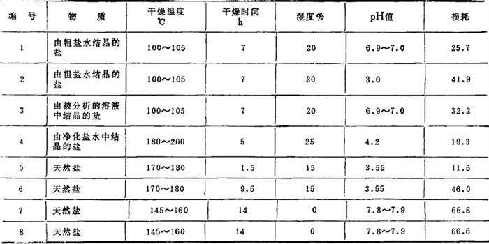 表5-3-3 盐粒干燥时碘化钠的稳定性