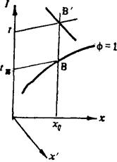 图3-4-83 I-x图用法之一 (2)已知干球温度、露点,求空气的湿含量及热焓量 取其温度为t露的等温线与Φ=1的等Φ线交于B点(即该空气冷却到露点温度时的状态点),沿B点的等x线垂直向上与干球温度t的等温线交于B′点,则B′点即为所求的空气状态点。过B′点的等x线与辅助x轴的交点即为空气的湿含量;过B′点的等I线与轴的交点即为空气的热焓量(见图3-4-84)。