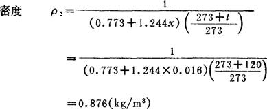 式中 x为Φ=84.5%、t=25℃时之湿含量,x=0.0167 kg/kg干空气。t=120℃ 导热系数 ③流化雷诺数Re计算