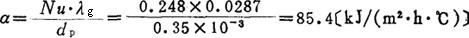 ④努歇特准数Nu计算 Nu=4×10-3(Re)1.5=4×10-3×15.81.5=0.248 ⑤给热系统α计算