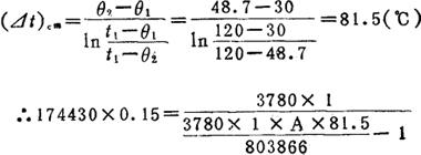 式中L0——热空气重量速度 此处L0=1.2×3600×0.876=3780〔kg/(m2·h)〕 CH——空气比热,此处CH=1.0kJ/(kg·℃) Z——静止时物料层高度,此处取Z=0.15m (⊿t)cm——物料与空气之对数平均温差