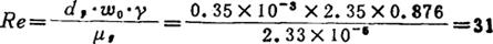 因假定的Re值与验算的Re值比较接近 所以极限速度wt=2.35m/s ③极限速度wt时之雷诺数Ret如上计算,Ret=31。 ④床层膨胀比NU