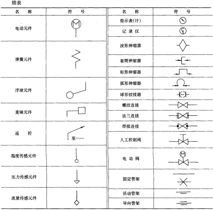 | 释义 | 饮料厂常用管材及管件 1.饮料厂常用流体的种类与代号 饮料厂管道安装中常见的流体种类及代号、管路连接符号、管件符号分别见表6-4-31、表6-4-32和表6-4-33。 表6-4-31 饮料厂常用流体种类及代号