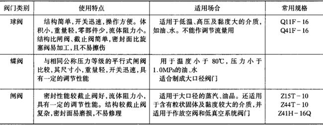 阀门的选用应根据介质的性质和参数,选用质量可靠、操作灵便的阀门。各种阀门的结构特点见表6-4-39。饮料厂的物料管道阀门均使用不锈钢的球阀、蝶阀、旋塞阀。 表6-4-39 常用阀门的特点和适用场合