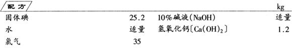 制法 在反应釜中,加入以固体碘为原料配成的5%浓度的碘液,在40~50℃通入氧化剂氯气进行反应,尾气用碱液进行充分吸收后再放空。当碘全部氧化后停止通氯气,继续搅拌0.5h后慢慢加入氢氧化钙进行中和,当反应液pH值呈中性后停止加料。中和反应温度在15℃以下,反应结束后,将产物进行过滤、洗涤、烘干,即得产品。 |
