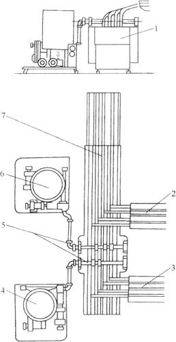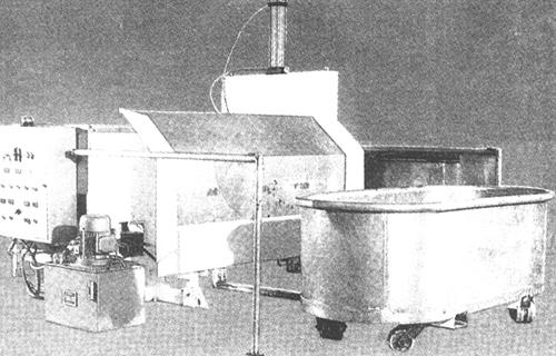 图3-3-1 定量送料装置 1.用途 该机可将和面机搅拌好的面团切成块头,并根据饼干成形机的吐量,自动送进所需的面团,是实现饼干生产自动化的特设机构。 2.组成 该机由切割装置和运输装置及自动控制装置等部分组成。 3.机构特点 该机采用液压驱动形式,自动化程度高。 (二)叠层机(图3-3-2)