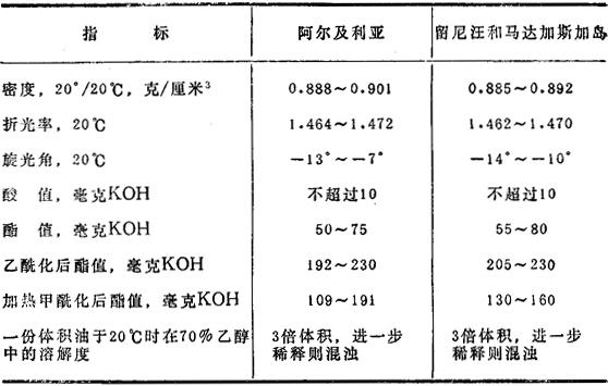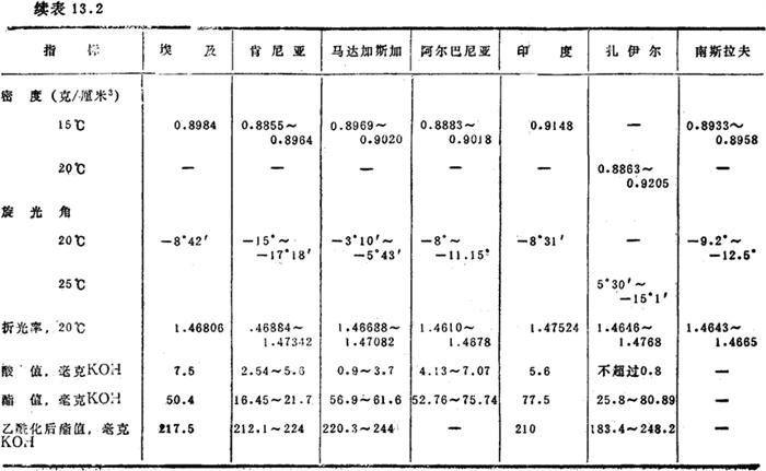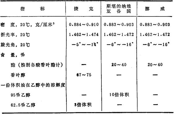 表13.8 按英国标准(BS2999/24~26∶1971)香叶油的质量指标