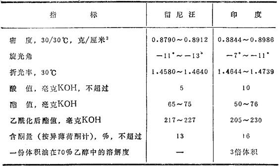 根据OCT18-160-74,苏联自新鲜的玫瑰天竺葵所获得的香叶油质量应符合表13.11中的要求。 表13.11 苏联产香叶油的质量指标(根据OCT18-160-74)