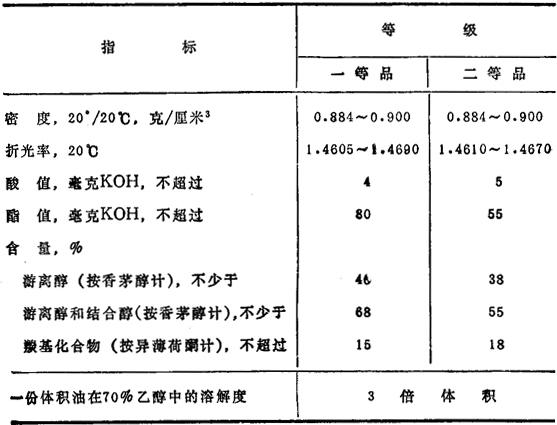 表13.9 按国际标准化组织技术委员会(ИCО TK-54,№1082-73F)标准草案香叶油的质量指标