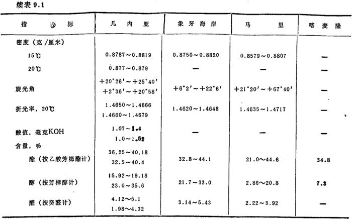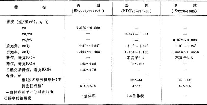 *这项指标的测定方法见附录第220页。 根据意大利和法国药典资料,香柠檬油的性质见表9.3。 表9.3 根据药典资料香柠檬油的物理化学指标