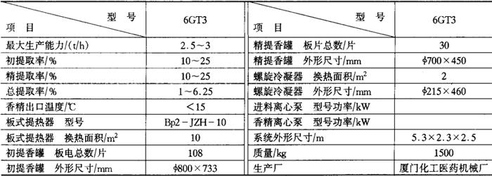 表4-8-8 香气回收设备主要技术参数