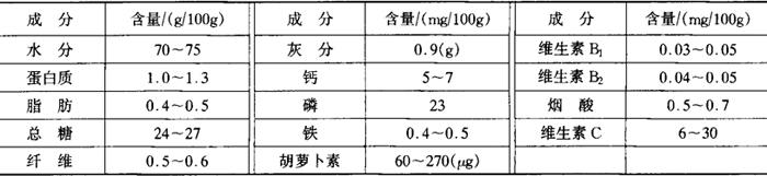 | 释义 | 香蕉浆 (一)香蕉的营养成分与加工特性 香蕉是营养丰富的水果,每100g香蕉可食部分的营养成分见表2-1-65。 表2-1-65 香蕉营养成分