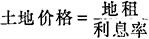 假定某块土地每年收租1000元,银行存款利息率为10%,这块土地的价格就是10000元。可见,土地价格并不是价值的表现形态,不是土地的购买价格,而是土地所提供的地租的购买价格。