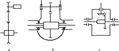 | 释义 | 驱动桥 驱动桥由中央传动、差速器、最终传动和左右半轴组成。小四轮拖拉机常采用两级中央传动,所以未设最终传动。三轮农用运输车采用一级中央传动,但不设最终传动。 (一)中央传动 1.类型 中央传动按其传动的级数可分为单级中央传动和两级中央传动;按传动件的类型,又可分为链传动、外啮合圆柱齿轮和螺旋圆锥齿轮式3种形式,分别如图3-10a、b、c所示。