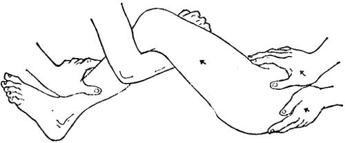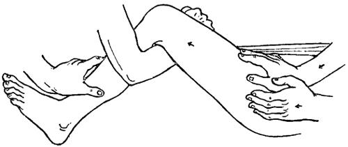 | 释义 | 骨盆骨折 骨盆骨折为常见骨折,约占全身骨折的3.2%。多由直接暴力挤压或撞击所致。根据骨折部位及后果可分三种: 一、稳定型骨盆骨折:包括髂骨翼骨折、耻骨或坐骨一支骨折、骶骨横断骨折和尾骨骨折脱位等。 二、非稳定型骨盆骨折:包括骨盆弓一处断裂或两处断裂。 【症状及诊断】 局部疼痛、肿胀,有皮下瘀血斑,明显压痛。摄骨盆正位X线片,可明确骨折部位和类型。如为骶、尾骨骨折,应摄侧位片. 【整复方法】 不影响骨盆环完整的骨折,不需要整复。耻骨联合分离重者,可用骨盆带悬吊牵引。只在骨盆环前后两处断裂,有明显移位时,宜行手法复位。 一、骶骨、尾骨骨折或脱位:伤员取膝、胸卧位。术者用一手固定骶部,另一手食指伸入肛门内,拇指抵在骨折部,当食指摸清向前移位的远断段时,用力向后推顶,即可复位。 二、骨盆弓多处骨折合并骶髂关节脱位:伤员仰卧位,在腰麻下,先作好同侧股骨髁上牵引。用长床单折迭8层,绕过病人会阴部,经健侧胸肩部固定在床头挡板上。一助手立于床头,把住双侧腋下向上牵引,另一助手用前臂套在腘部向下牵引。压缩型骨盆骨折,术者立于伤侧上方,双手掌抵住髂骨翼的前上方,向下、向外、向后按压(图12~13)。分离型骨盆骨折,术者两手掌分别抵住髂骨翼的后上和外上方,向下、向前内用力推挤(图12~14),当听到响声时,即说明复位。如向上残留有少量移位,可在牵引中矫正。