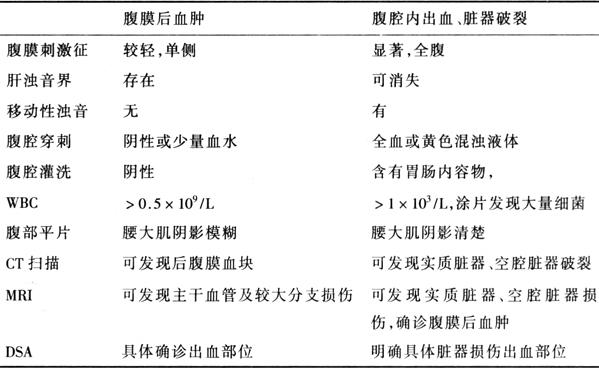 | 释义 | 骨盆骨折的并发症 (一)出血性休克 高能量外力致伤的骨盆骨折可发生致命的大出血,出血量多少与骨折的严重度相一致,休克在伤后很快出现。严重的出血性休克为骨盆骨折死亡的主要原因,应尽早诊断、尽快处理,以挽救生命。 1.出血来源 (1)骨折断端渗血 构成骨盆的诸骨大部分为松质骨,如髂骨、骶骨等,血运丰富,骨折后断端可大量渗血,其量多少与骨折严重度成正比,这种渗血不易止住,是发生休克的一个重要出血源。 (2)骨盆壁及临近软组织撕裂出血 这也是重要出血源。 (3)骨盆内脏器破裂出血 骨盆内脏器如膀胱、直肠、女性的子宫和阴道被骨折端刺伤撕裂可引起严重的出血。 (4)骨盆内血管损伤出血 骨盆内血管从大的动脉主干到小的动脉分支,纵横交错,与骨盆关系密切。骨盆前部骨折可伤及闭孔动静脉、阴部动静脉、耻骨动静脉、髂外动静脉分支,有时甚至伤及髂外动静脉主干;骨盆侧部骨折可伤及闭孔动静脉;骨盆后壁骨折可伤及腰动静脉、髂腰动静脉、骶外侧动静脉、骶中动静脉、骶正中动静脉、臀上动静脉。在高能量外力致伤中,骨盆为几个部分同时骨折,故可能造成上述几组血管同时受损,发生大出血。 (5)骨盆内静脉丛损伤出血 围绕盆腔内壁具有异常丰富互相连通的静脉丛,面积约为动脉的10~15倍,形成“血管湖”。静脉丛血管壁薄,收缩性差,周围又为疏松组织,无压迫止血作用,当骨盆骨折时,极易伤及静脉丛,引起大出血。 2.诊断 (1)病史 有明确的外伤史如车辆撞击、辗压或高处坠落史,病人除主述骨折部位疼痛外,还有腰痛、腹部疼痛。 (2)体征 ①一般情况 病人可有面色苍白、出冷汗、躁动不安、肢体发冷、口渴、脉快、少尿或无尿、收缩压下降、脉压减少等。 ②局部体征 下腹部、腰部、会阴部及大腿中上段可见皮肤青肿、皮下淤血斑,有时可触及明显的皮下血肿。 ③腹膜刺激征 出现腹痛、腹胀、腹部压痛、反跳痛、腹肌紧张,并有肠蠕动减弱等现象,注意与腹腔内脏器破裂、出血相鉴别。 (3)X线表现 在X线片上可见骨盆环有两处以上骨折,或骨盆后部骨折脱位或骨盆粉碎骨折。 (4)腹膜后血肿与腹腔内出血、脏器破裂的鉴别 见表9一1。