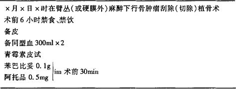 说明:(1)骨良性肿瘤包括骨瘤、骨样骨瘤、骨软骨瘤、内生软骨瘤骨等。骨瘤样病损包括骨囊肿、动脉瘤样骨囊肿、嗜酸性肉芽肿等。 (2)骨良性肿瘤及骨瘤样病损的手术,主要是局部切除、刮除,同时取髂骨或其他植骨材料(脱钙骨、骨泰等)植骨,或以骨水泥充填骨腔。 |