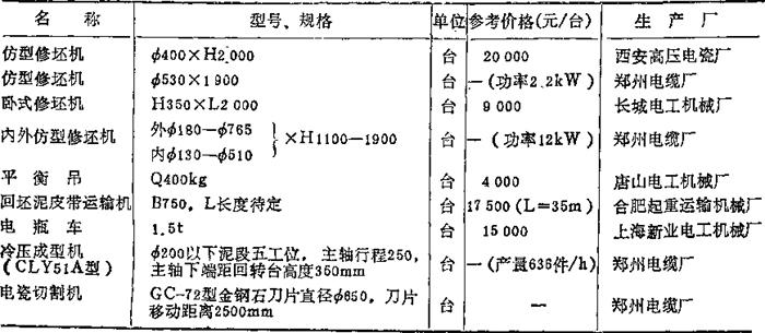 目前多采用的电瓷成型设备,参见表2-26所列。