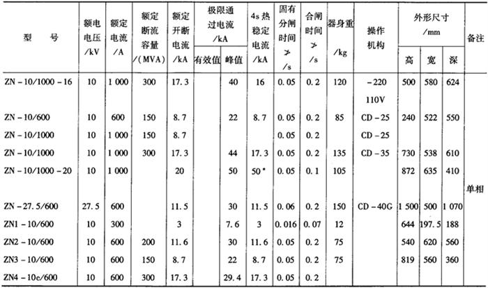 | 释义 | 高压真空断路器 高压真空断路器是三相户内高压电气设备,适于作配电网络或电缆线路中的配电开关。尤其适用于频繁操作,因此可作为控制、保护20T以下的电弧炼钢炉变压器,6kV、400~4000kW,3kV、200~2000kW高压电动机,保护大型硅整流装置,分合1000~10000kvar电容器组之用。 真空断路器主要技术参数见表5-5。 表5-5 真空断路器主要技术参数