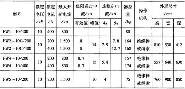 户外高压负荷开关的技术数据见表5-19。 表5-19 FW型高压户外负荷开关主要技术参数