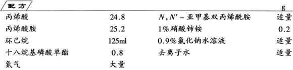 制法 在带有搅拌器、回流冷凝管、滴液漏斗以及氮气导入管的250ml四颈烧瓶中,装入环己烷、十八烷基磷酸单酯,通入氮气,升温至70℃。将丙烯酸、硝酸铈铵、去离子水、氯化钠、N,N′-亚甲基双丙烯酰胺加入其中。在滴液漏斗中,加入经重结晶的丙烯酰胺及适量的去离子水,缓慢将其滴入三颈烧瓶反应体系中,进行聚合反应,滴加时间为30min。滴加完后,继续反应1h,降至室温,将反应液分离,干燥,得到小颗粒状聚合物,即为产品。 在丙烯酸与丙烯酰胺共聚反应中,由于丙烯酸的活性很高,聚合反应不易控制,聚合物的交联度很大,吸水能力下降,因而常使用强碱中和部分丙烯酸,丙烯酸的中和度对共聚物吸水、吸盐水能力关系较大,为了得到性能优良的高吸水树脂,本配方采用氯化钠水溶液代替部分去离子水进行聚合反应。所得到的高吸水树脂,每克聚合物吸离子水达680ml,吸盐水达68ml。 |