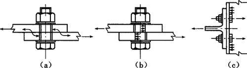 | 释义 | 高层建筑钢结构连接技术 高层建筑钢结构的连接是其主要的一项施工技术,其连接方法关系到施工速度、连接质量和工程费用。目前常用的钢结构连接方法主要有:螺栓连接、铆钉连接、高强度螺栓连接、销钉连接、自攻钉连接、焊接及栓焊连接等。螺栓连接、铆钉连接等均属于传统的钢结构连接方法,这里不再讲述。下面介绍目前技术先进、应用广泛的高强度螺栓连接。 钢结构高强度螺栓连接,是20世代60年代发展起来的连接新技术,它具有施工方便、可拆可换、传力均匀、无应力集中、接头刚性好、承载能力大、疲劳强度高、螺母不松动、安全可靠等优点,已成为取代铆接和部分焊接的一种主要的现场连接方法,成为钢结构工程应用最广泛、最重要的连接方法之一。 高强度螺栓的连接方式,可分为摩擦型连接、承压型连接和张拉型连接三种(图12-14)。建筑钢结构中还经常采用混用连接和并用连接。