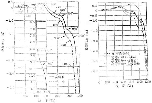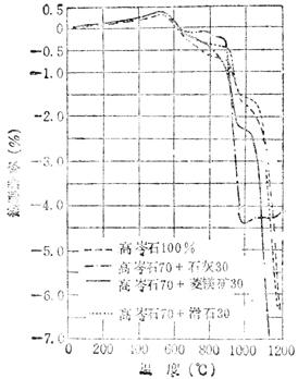 5.1200℃以上是高岭土的莫来石化过程,剩余部分生成方石英。在1220~1300℃范围内,因收缩减少,可以看到这种情况。