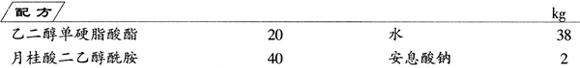 制法 将乙二醇单硬脂酸酯和月桂酸二乙醇酰胺加热至80℃,熔融成均一溶液,然后冷却,使乙二醇单硬脂酸酯结晶析出。当温度降至65℃以下时,徐徐加水使结晶充分析出,再加安息酸钠调配其黏度,最后获得高浓度、分散性好的珠光剂。 本配方引自日本特开昭56-7102专利介绍的高效珠光剂专门技术。 |