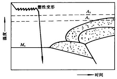 | 释义 | 高温变形热处理 15.7.2.1 什么是高温变形热处理 如图15-41所示,在奥氏体稳定区内进行塑性变形(如锻、轧等),然后立即淬火并回火至所需的硬度.这种工艺称之为高温变形热处理. 共析钢应在接近A3温度以上进行塑性变形,过共析钢则应在A1以上进行塑性变形.由于变形温度远高于再结晶温度,变形强化效果易被再结晶过程削弱,所以变形温度和变形后至淬火的间歇时间对钢的力学性能影响较大.高温变形热处理的强化原因是,高温变形过程中的位错密度及其他晶体缺陷大大提高,变形后如能及时淬火,马氏体继承了奥氏体的晶体缺陷,并使马氏体细化,从而获得强韧化的效果.