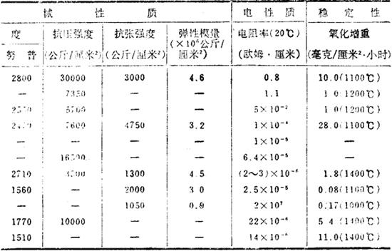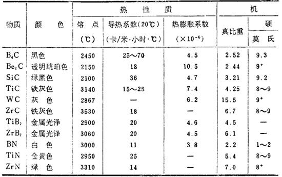 高温碳化物、硼化物和氮化物烧结体的性质