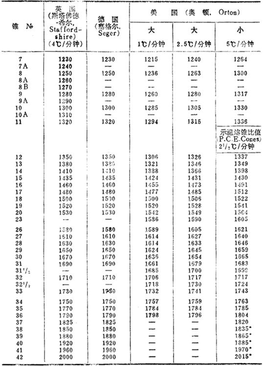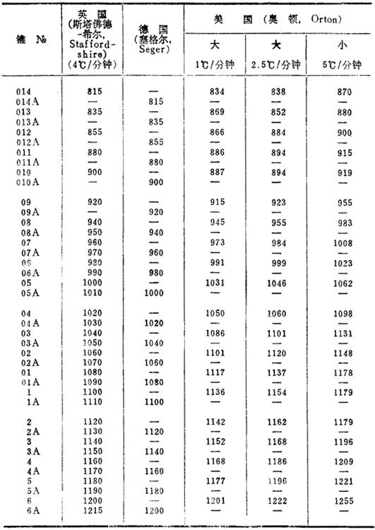 高温锥号与标称温度(℃)