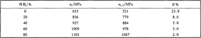 表2-42 冷作对抗拉性能的影响