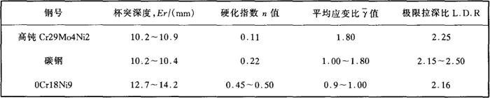 表2-45 高纯Cr29Mo4Ni2钢板成型性能的比较