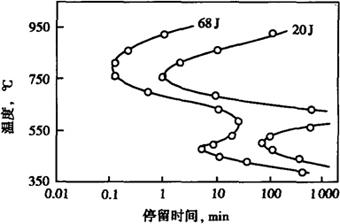 应当指出,高纯Cr29Mo4Ni2钢的力学性能,特别是钢的韧性受钢的化学成分(特别是C,N),热处理工艺以及试样尺寸和冷却速度的极大影响,图2-43和图2-44系加热温度、时间、试样尺寸和冷却速度对高纯Cr29Mo4Ni2钢韧性和脆性转变温度的影响。加热温度、时间对此钢韧性有极大影响,主要是475℃α′相的析出,~800℃σ(x)相的析出。试样尺寸和冷却速度对钢的脆性转变温度的影响主要是碳、氮化物的析出。为此,在使用条件下,高纯Cr29Mo4Ni2钢应避开α′相和σ相的形成温度。此钢一般在315℃以下长期使用。为了获得最佳的耐蚀性。高纯Cr29Mo4Ni2钢应采用真空精炼,在很窄的范围内控制合金化学成分。