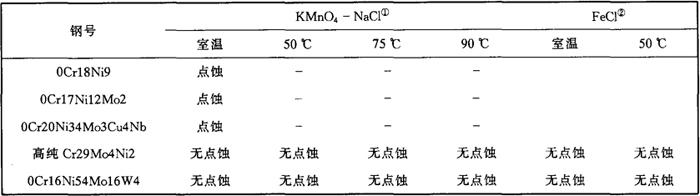 表2-50 高纯Cr29Mo4Ni2钢的耐孔蚀性