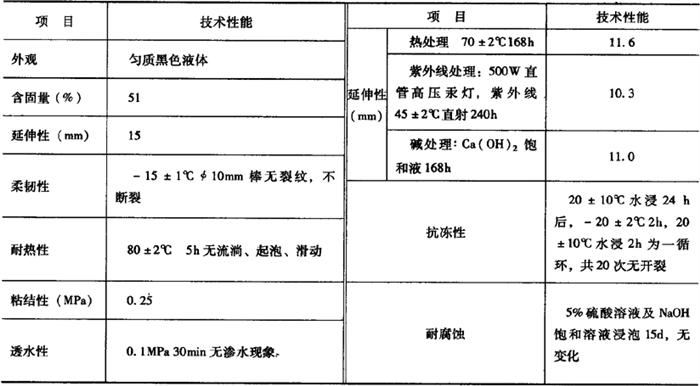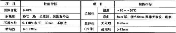 表10-61 水乳型SBS弹性沥青防水涂料的技术性能