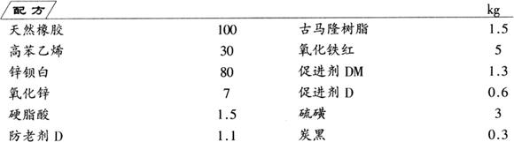 先将天然橡胶、高苯乙烯和促进剂DM及促进剂D混合,进行塑炼,再加入其余组分进行混炼,薄通,得到胶料。按鞋底成型工艺压制成型,经硫化,制成鞋底。