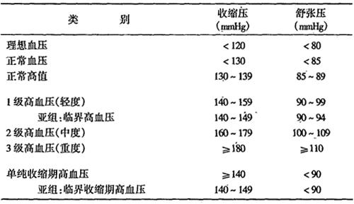 注:患者的收缩压和舒张压分属不同级别时,应按两者中较高的级别分类。患者既往有高血压史,目前正服抗高血压药,血压虽已低于140/90mmHg,也应诊断为高血压。
