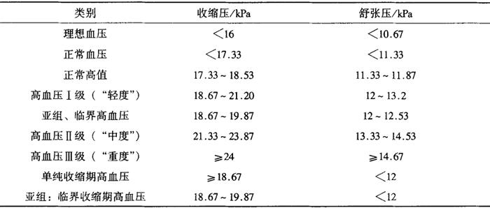 | 释义 | 高血压病 高血压病是一种最常见的心血管疾病,以体循环动脉压升高为主要特征,伴有心、脑、肾等器官功能性或器质性改变。临床症状见头晕、头痛、头胀、颈部沉紧、耳鸣、肢麻、心悸等。该病属中医“眩晕”、“头痛”范畴。 1 诊断标准 1.1 病名诊断 1.1.1 临床表现:早期多无症状,或表现为头晕、头痛、眼花、耳鸣、失眠、乏力等;随病情进展,心、脑、肾等器官受损,可出现并发症,如心绞痛、心肌梗死、心力衰竭、脑血栓形成、脑出血、高血压脑病、肾功能衰竭等。体征包括收缩压≥18.67kPa(140mmHg)和(或)舒张压≥12kPa(90mmHg),主动脉瓣区第二心音亢进,可有第四心音,主动脉瓣区收缩期杂音或收缩早期喀喇音。 1.1.2 发病特点:多数患者发病及进展缓慢,少数亦可发病急骤、进展迅速。 1.1.3 诱发因素:摄入钠盐过量,长期焦虑紧张,过量吸烟饮酒,肥胖等。 1.1.4 检查项目:X线、心电图、尿液分析、血液生化、眼底检查、心脏及血管超声、动态血压监测等有利于本病的诊断及分级。 1.2 分类诊断 1.2.1 分型 根据起病和病情进展的缓急及病程的长短,可分为以下两型: 缓进型高血压:起病隐匿,多在中年以后,病情发展慢、病程长,早期血压波动,时高时正常;随着病情发展,血压升高趋向持续性,但病人自觉症状可不明显。 急进型高血压:发病急骤,也可有缓进型高血压病史,多在中青年发病,症状明显,发展迅速,血压显着升高,舒张压多持续在17.33~18.67kPa(130~140mmHg)或更高,常于数月至1~2年内出现严重的脑、心、肾损害,发生脑血管意外、心力衰竭和尿毒症,进而导致死亡。 1.2.2 分期 一期:无器官变化表现。 二期:至少有以下一项器官受累表现,如左室肥大(放射学、心电图、超声心动图查出);普遍或局灶性视网膜动脉狭窄;微蛋白尿、蛋白尿和(或)血浆肌酐浓度轻度升高(106~177μmol/L);主动脉或颈动脉、髂动脉或股动脉有动脉硬化斑块(超声、放射学查出)。 三期:出现器官损害表现。心脏:心绞痛、心肌梗死、心力衰竭;脑:脑卒中、短暂性脑缺血、高血压脑病、血管性痴呆;眼底:视网膜出血或渗出、伴或不伴视乳头水肿;肾脏:血浆肌酐浓度升高>177μmol/L、肾功能衰竭;血管:夹层动脉瘤、动脉闭塞性疾病。 1.2.3 分级分度 表1-9-1 高血压病分级分度