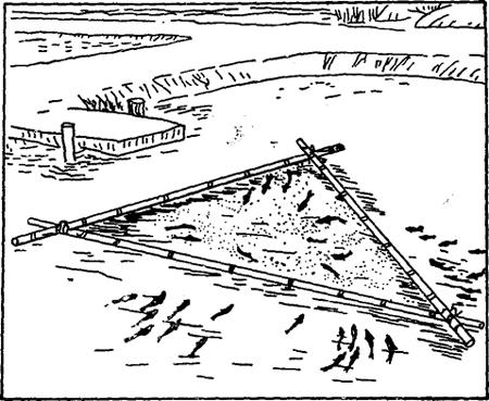 | 释义 | 鱼种池日常管理 (1)定位 每只池都应在安静向阳处设固定的食场图2-30。鲢鳙鱼池可每5000-8000尾用芦席小竹搭成一个约一米2的食台,食台离岸一米,位于水下30-40厘米见图2-31。
